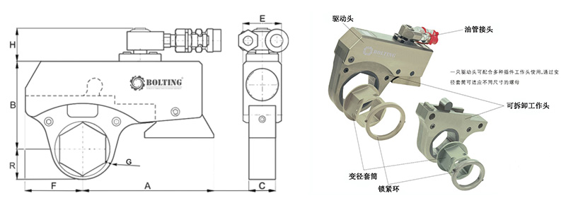 產(chǎn)品的選取依據(jù)螺栓鎖緊和拆松扭矩而定,扭矩值會因螺栓直徑和強度等級不同而有所變化。 |