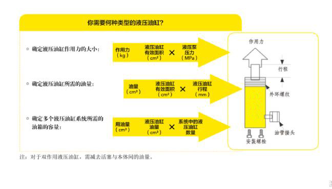 在選擇液壓油缸時首先得確定油缸的噸位。一般來說,我們所選的液壓油缸噸位必須要比負載高20%噸位。無論是在哪種工況應用,液壓油缸的本體高度加上行程是否有足夠的使用空間決定了這一型號能否用。因此,油缸的本體高度及行程是必須要考慮的,且所選油缸行程必須要選擇有足夠余量的。